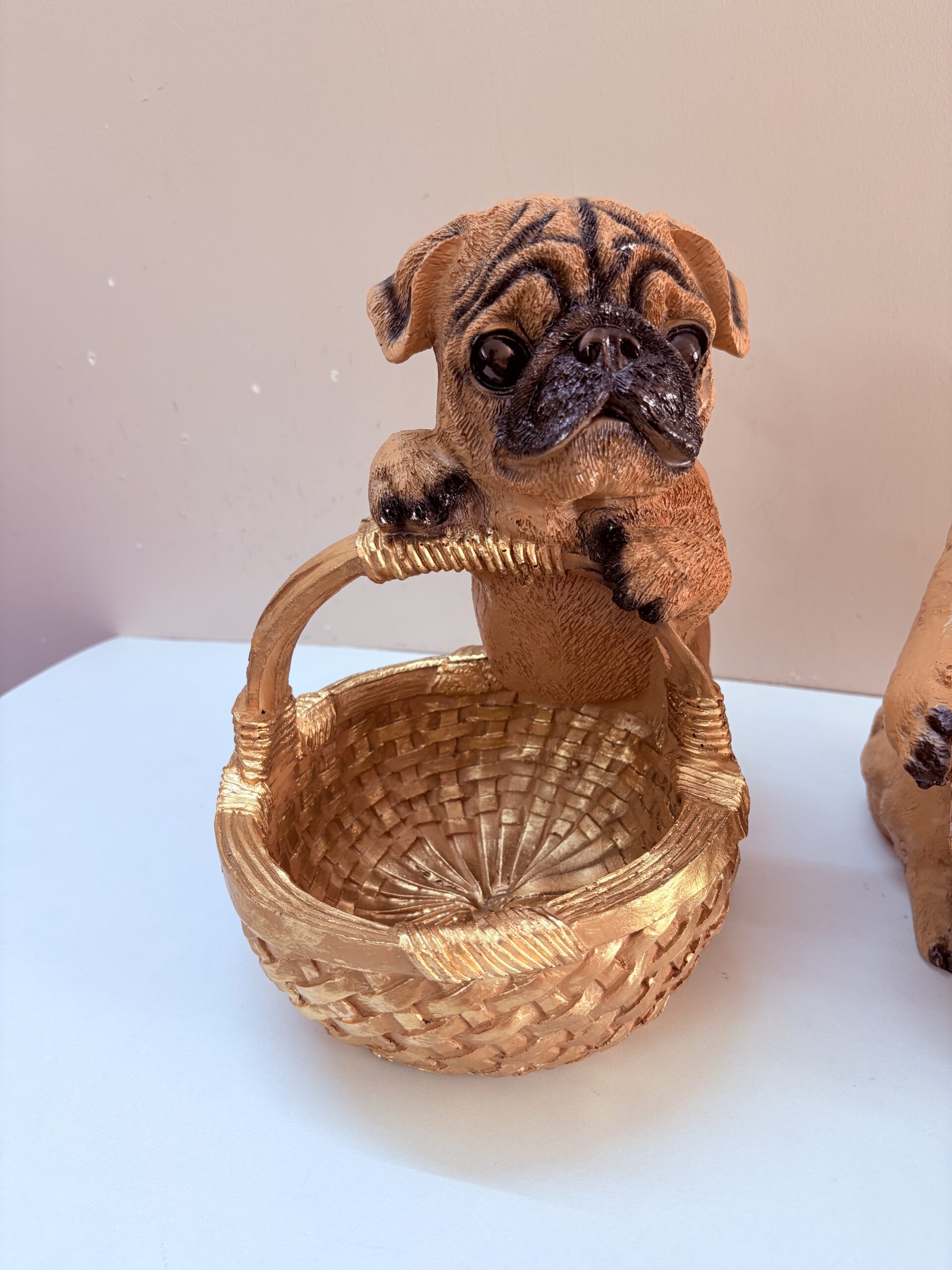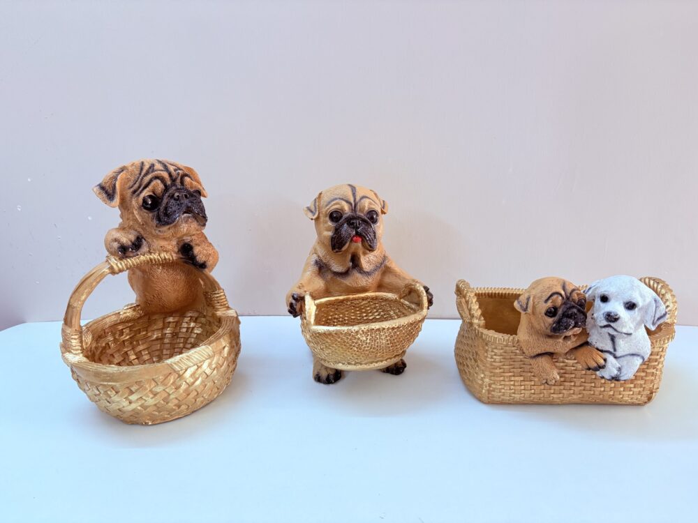 Bring home a playful blend of cuteness and functionality with these resin dog statues holding baskets. Designed with lifelike expressions and intricate detail, each piece features a dog clutching or sitting beside a woven-style basket — ideal for holding mobile phones, keys, pens, or other small daily essentials. Whether placed on an office desk, bedside table, or in a child’s room, they add charm while serving a purpose. Available in 3 unique designs and sizes to suit your space.