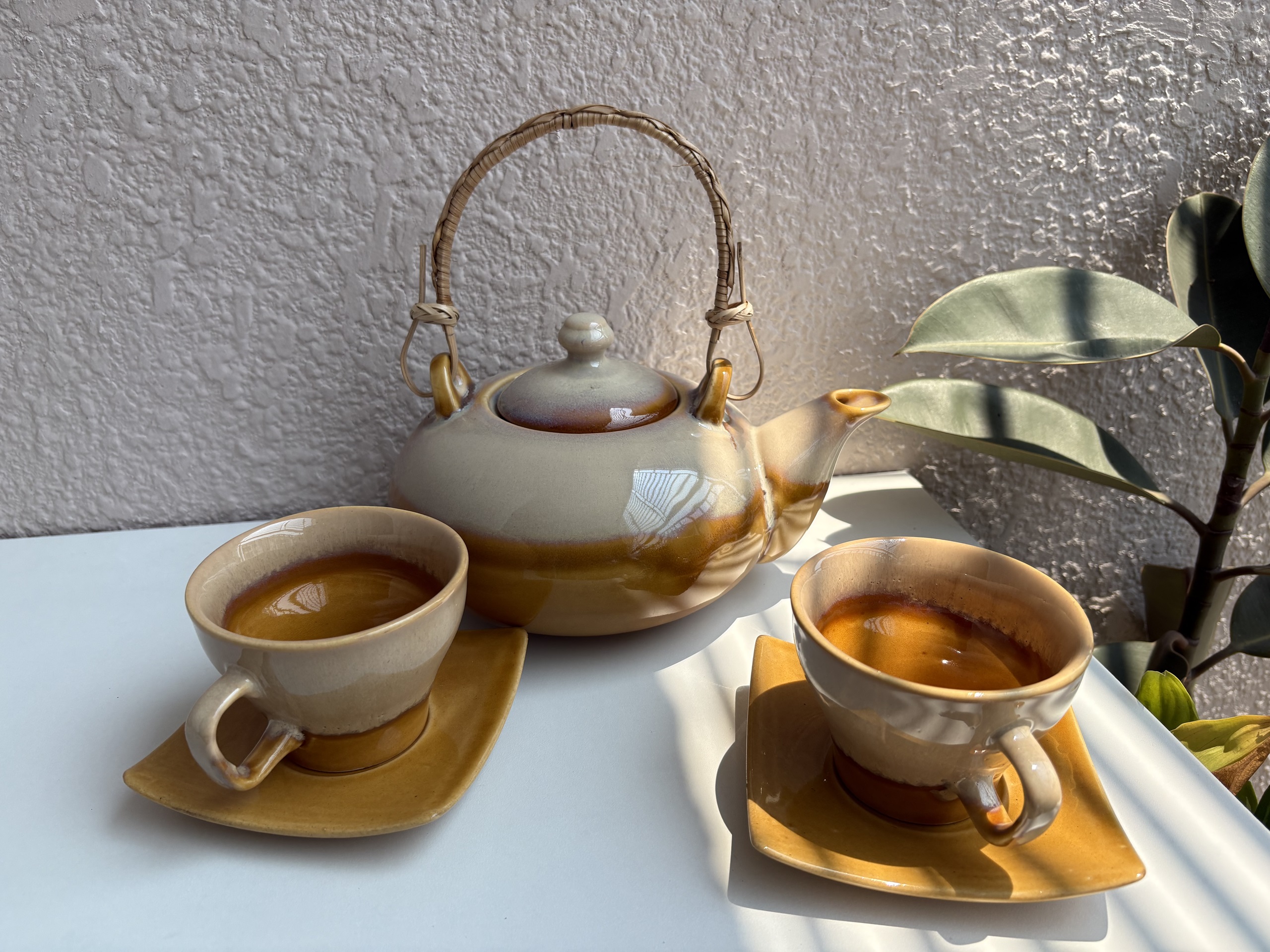 Caramel Tea Cup and Saucer Set with Designer Tea Pot