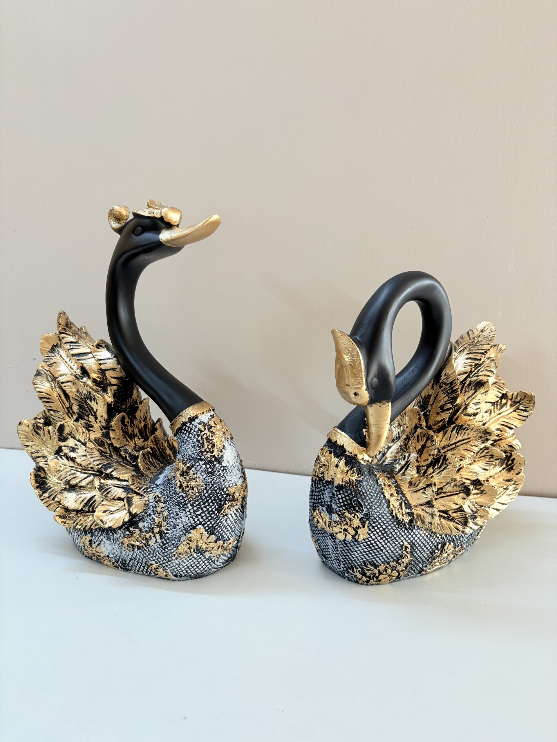 Transform your home décor with our exclusive “Golden Grace Swan Duet” sculpture. This breathtaking piece showcases two pristine white swans, their necks gracefully curved and their magnificent golden wings catching the light with a subtle shimmer. Crafted from high-quality polyresin, each feather and contour is rendered with extraordinary precision, creating a lifelike representation that embodies elegance and refined taste. Whether displayed in your living room, bedroom, or office, the “Golden Grace Swan Duet” brings an air of tranquility and sophistication to your space.