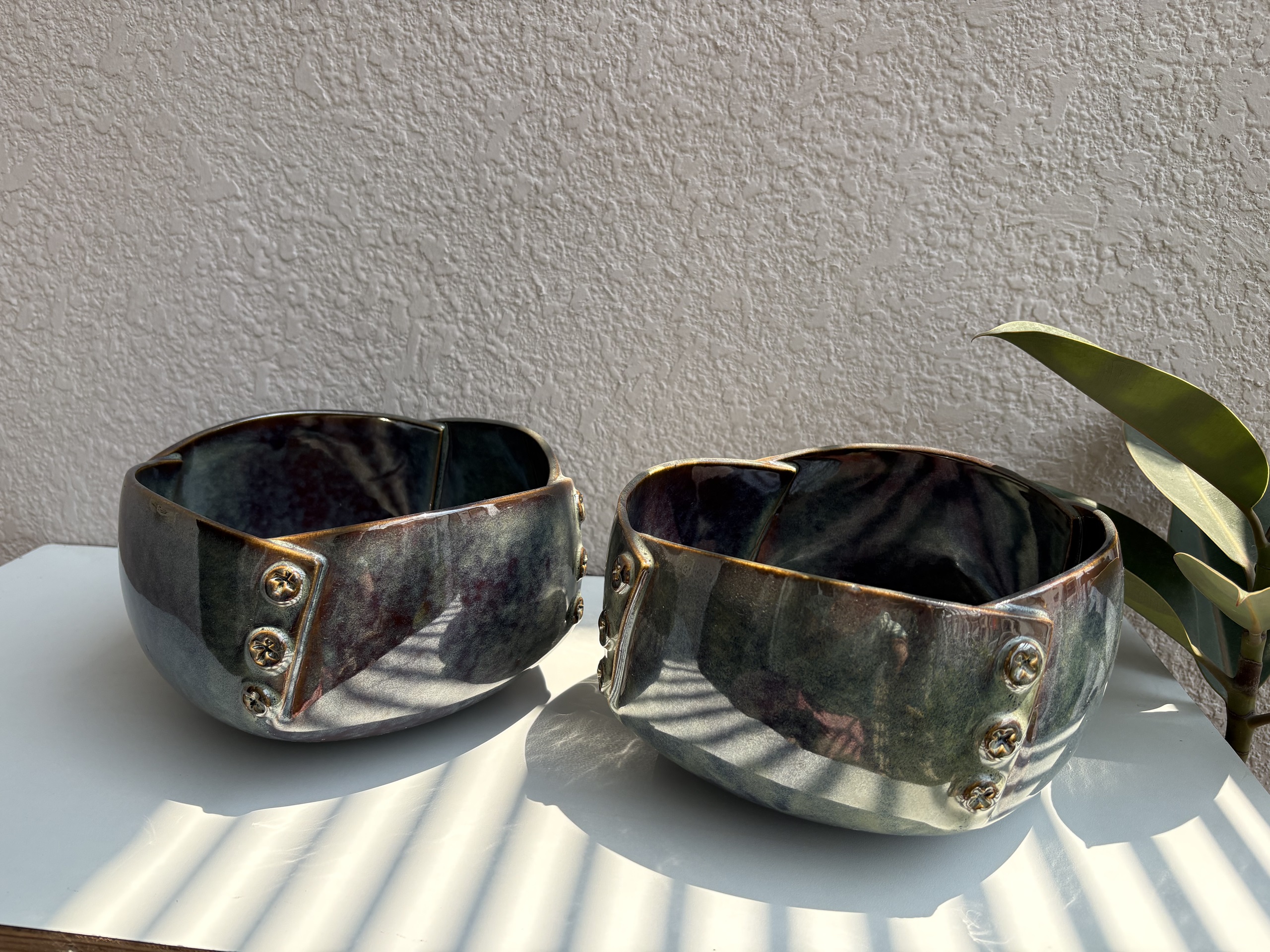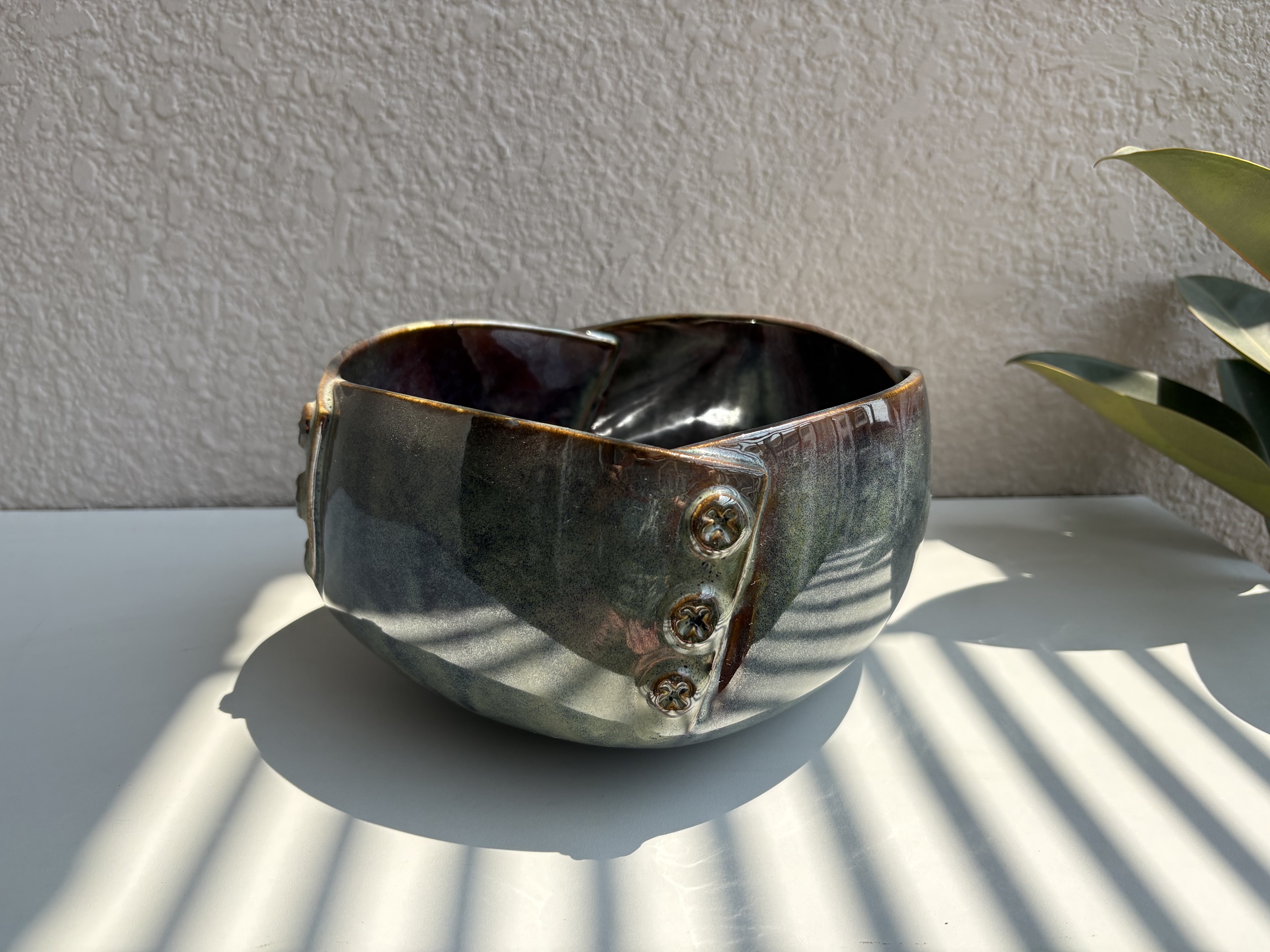 Bring home a perfect blend of art and utility with our handcrafted Forest Stitch Artisan Bowl — a designer ceramic piece that’s as functional as it is beautiful. Thoughtfully crafted in a deep, generous shape and finished in earthy forest green tones, this bowl is an effortless show-stealer on any table. The hand-folded edge detail, accentuated with ceramic buttons, adds a rustic yet refined touch, making it more than just a bowl — it’s a conversation starter.