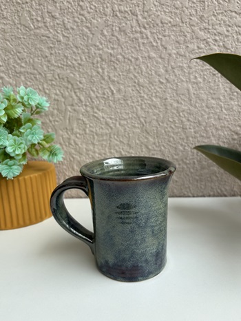 Sip serenity with the Forest Mist Studio Mug, a 320 ml ceramic beauty inspired by nature’s calming tones. Its elegant flared rim, speckled glaze, and earthy green hue make it a statement piece for your drinkware collection.