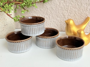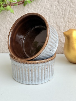 Rustic yet refined, the Mocha Frost ramekin brings an earthy elegance to your serveware. With its deep brown interior and frosted outer body, it’s ideal for both oven-to-table baking and serving chutneys, sauces, or soufflés. The grooved texture adds a vintage-modern aesthetic.