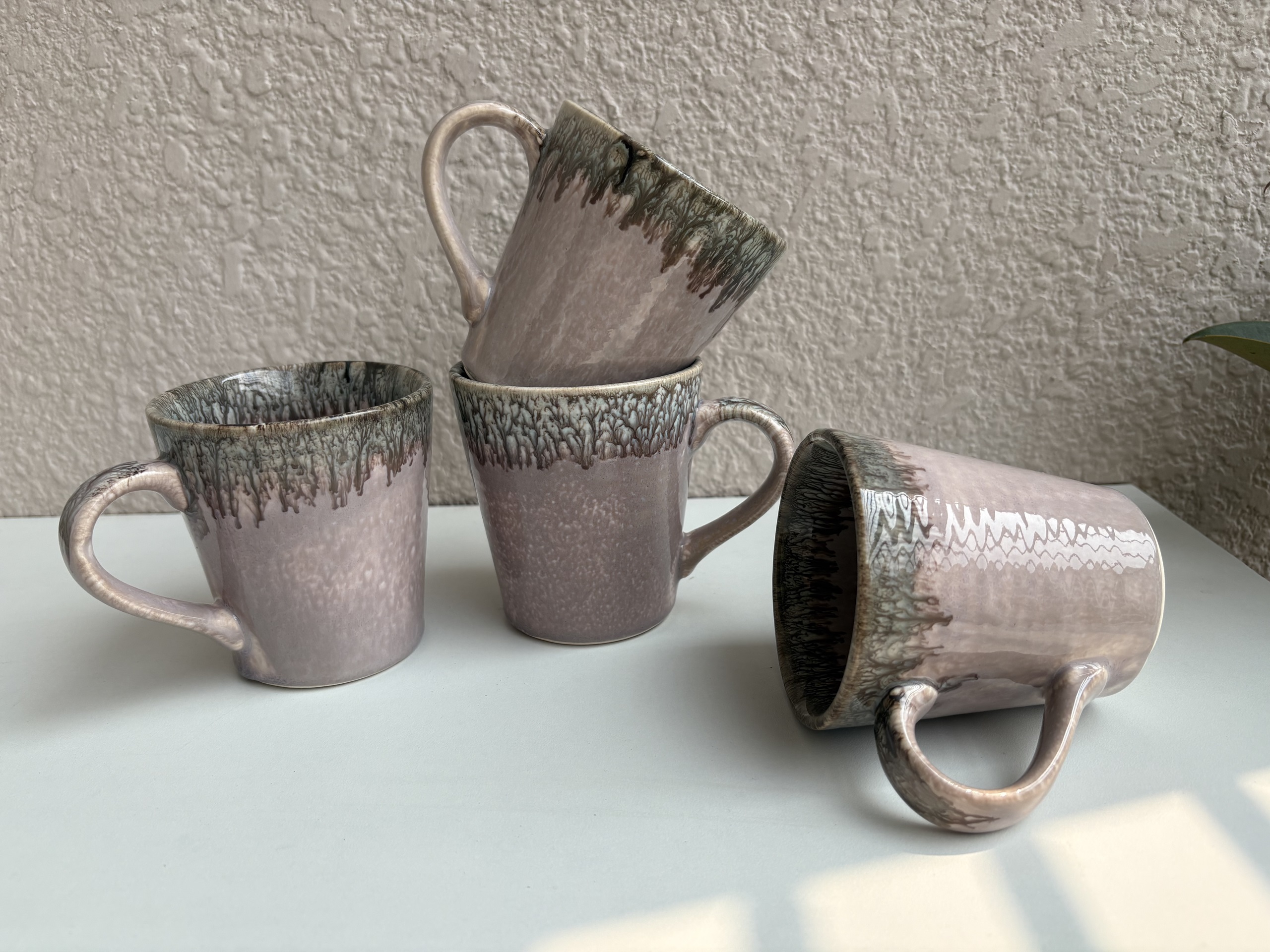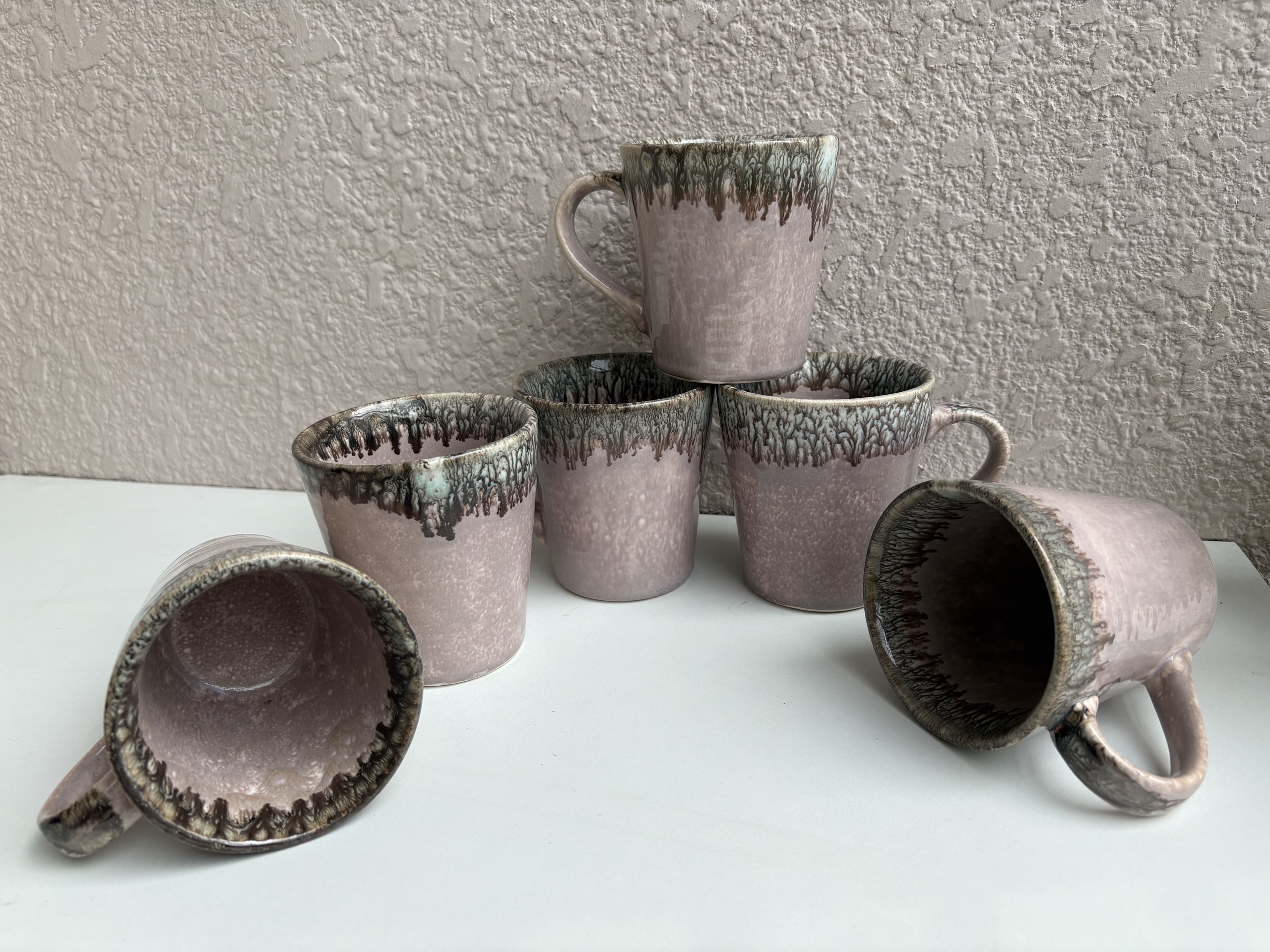 This pottery set combines functionality with artistic appeal, making it perfect for both everyday use and special occasions. The blush pink tone with dark detailing creates a versatile color palette that works well in many home styles.